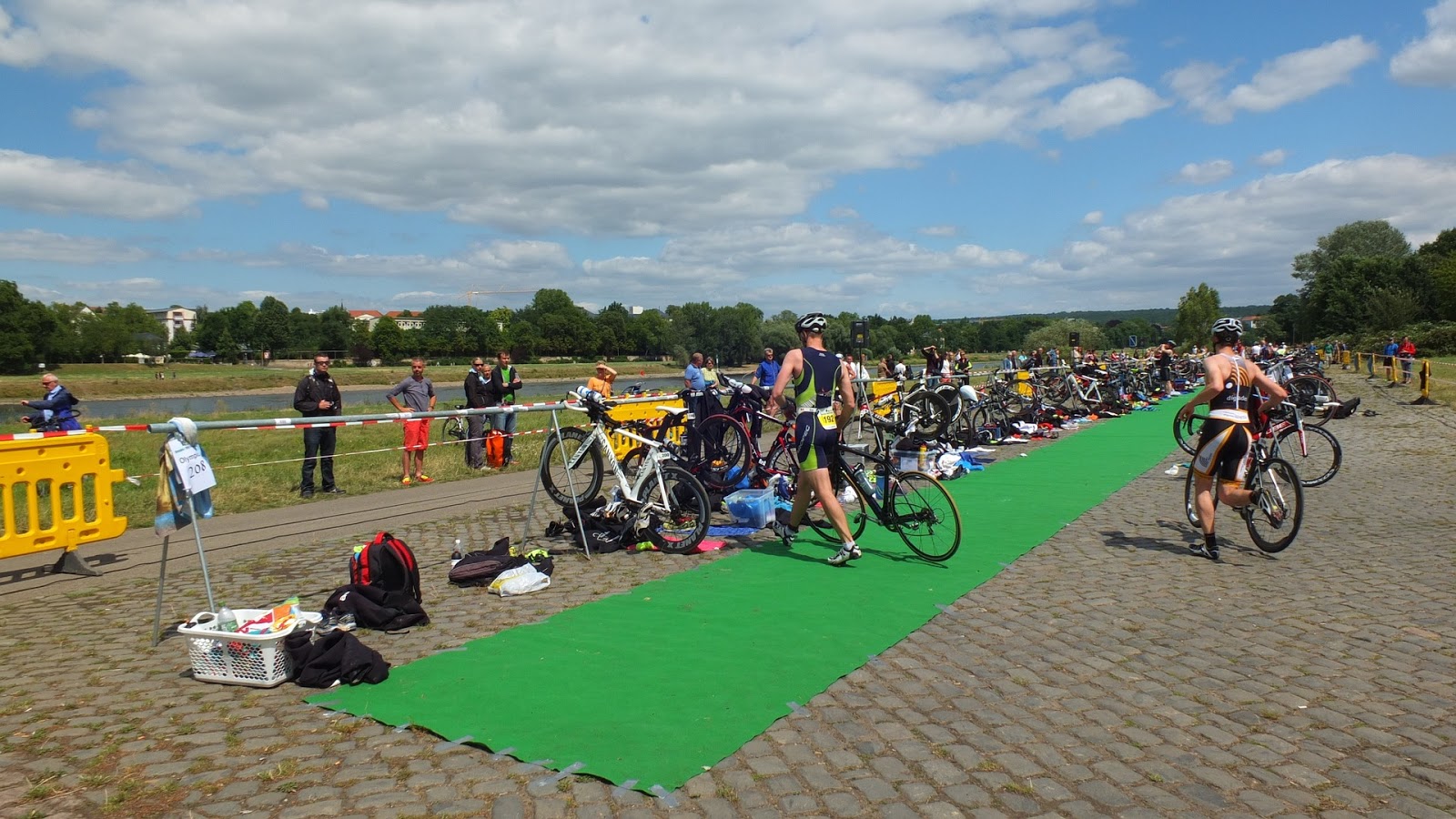 Perlombaan olahraga ini diawali dengan start massal, kemudian berlangsung terus tanpa henti serta tidak ada jeda diantara ketiga bagian tersebut Transisi antar bagian berperan sangat penting dalam mengikuti strategi lomba. Atlet Triathlon putri biasanya menyelsaikan lomba dalam waktu kurang lebih dua jam. Seddangkan atlet terbaik putra bisa menyelesaikannya dalam waktu kurang lebih 1 jam 50 menit.